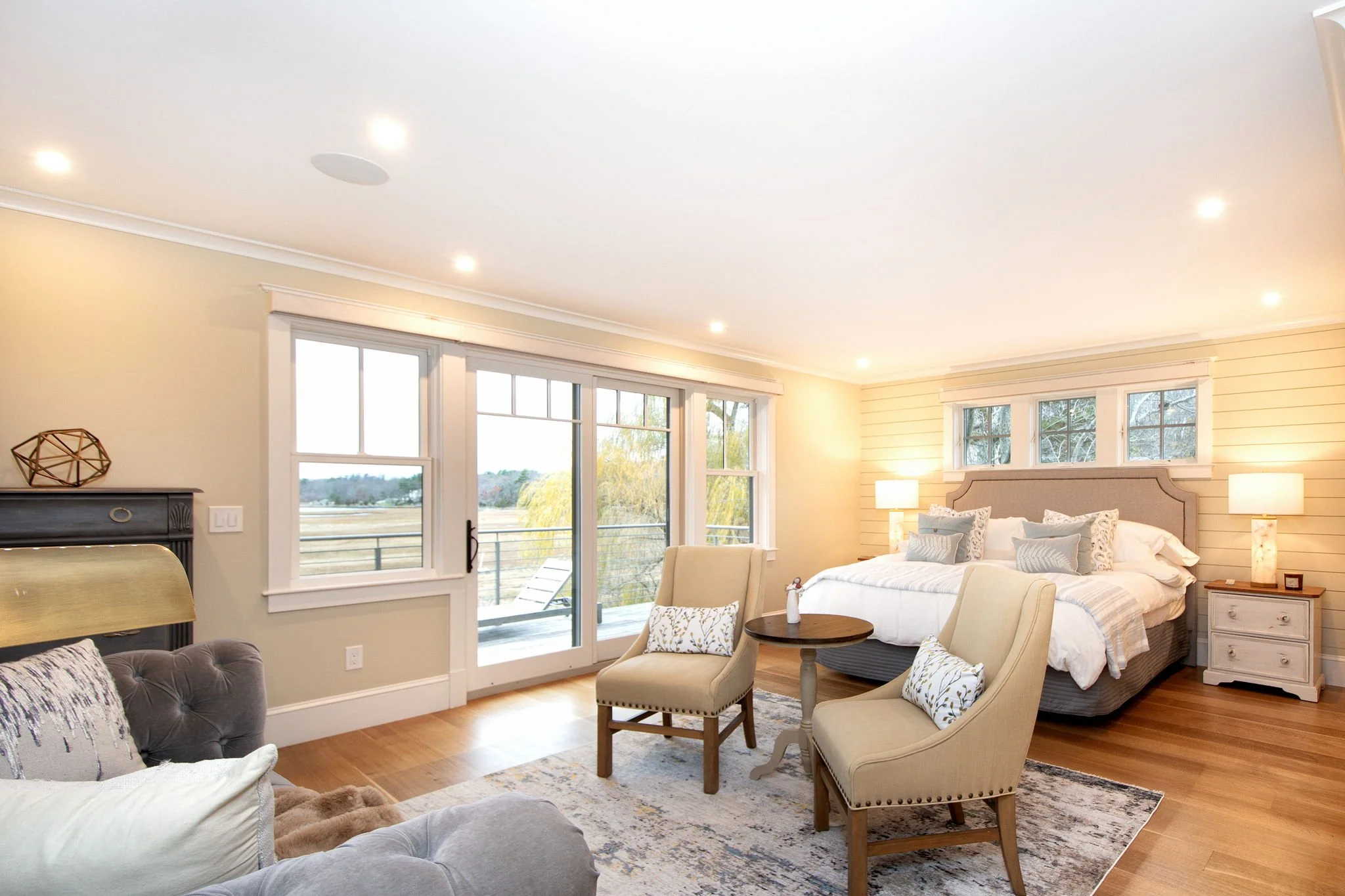 Immerse yourself in the captivating beauty of coastal living with our enchanting rooms, The Sunrise and The Sunset, each offering a unique vantage point to admire the breathtaking views over the marsh and the Gulph River. The bedroom is located on the 3rd level adjacent to the Loft game room and private balcony that overlooks the Gulph River and marsh.
